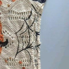 BOO-tiful and breezy—this open-knit sweater is all treats, no tricks. With cheeky pumpkins, flying bats, and webby details, it’s the perfect layer to haunt your October nights in style.