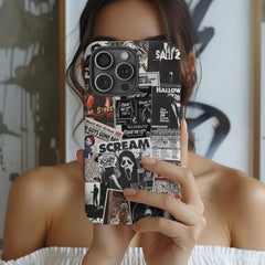 Your phone’s Halloween costume: dressed head-to-toe in cult horror posters, ready to spook, shock, and survive the drop.