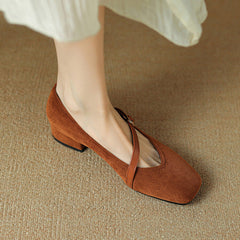 Soft premium suede forms the graceful silhouette of these mary-jane pumps, with a modern buckle strap and cushioned insole built for all-day wear.