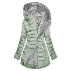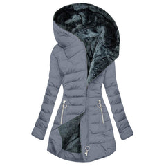 Built for deep-winter comfort, this jacket pairs cloud-soft plush lining with a sculpted outer shell that locks in warmth without bulk. The oversized hood wraps you in quiet shelter when the wind bites.