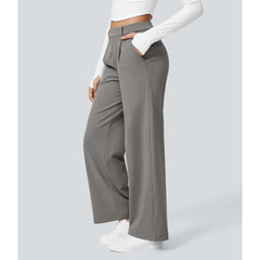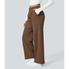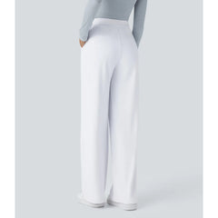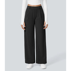 A widened leg cut gives these high-waisted work pants a refined ease, with front pleats and side pockets made to carry you from office hours to after-hours.