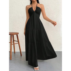 Designed to turn heads and start conversations, this tiered halter maxi commands attention the moment you walk in. The gathered bust creates structure while the empire waist flows into three cascading tiers - flattering proportions that photograph beautifully and wear even better.