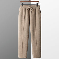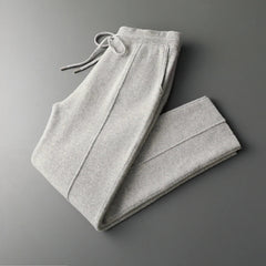 Mongolian-cashmere blend with a drawstring waist and clean front seams, cut for relaxed line that moves from lounge to light errand runs.