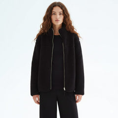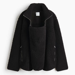 Plush teddy fleece wraps you in warmth without the bulk, cut loose for growing bellies and baby carriers alike. A jersey-lined panel integrates when needed, detaches when done - this is outerwear that grows with you, not against you.
