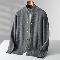 Quietly luxurious and effortlessly refined — the Trevani Cashmere Cardigan offers a minimalist take on timeless knitwear. With its smooth finish, tonal buttons, and structured stand collar, it’s a layering piece that’s both versatile and undeniably elevated.