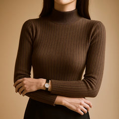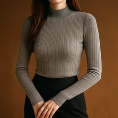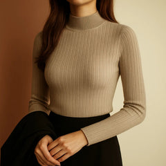 A fine rib-knit that feels close to the skin, this mid-neck sweater brings structure and softness in equal measure. Light yet defined, it layers with ease for any season.